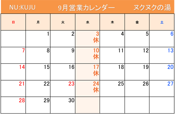 • 毎週水曜日(9月3日・10日・17日・24日)はお休み となります。